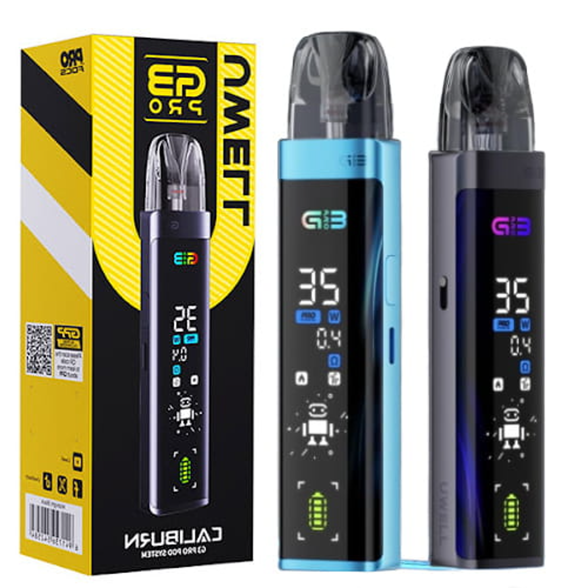 The newest pro version pod system in the Caliburn G family is the Uwell Caliburn G3 Pro Pod Kit. The Uwell Caliburn G3 Pro has an integrated 1000mAh rechargeable battery for extended vaping, and it has a draw-or button-activated firing system that can provide up to 35W of power. With a huge LCD screen that dynamically displays the vaping details, the Uwell Caliburn G3 Pro holds a 2.0ml capacity and uses an integrated mesh coil to produce delectable vapour clouds. It is compatible with the new Caliburn G3 Replacement Pods.