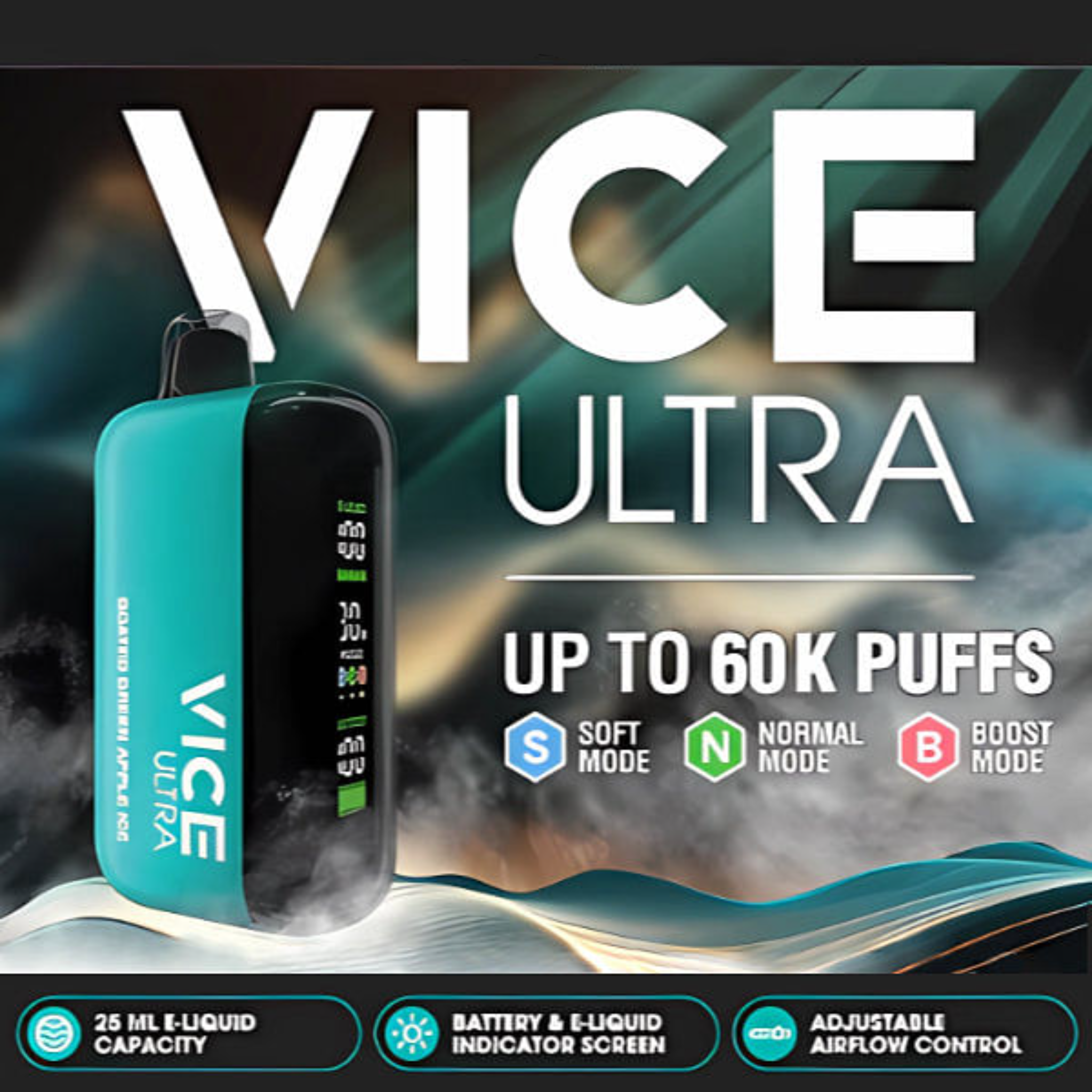 The VICE ULTRA stands out with its advanced LED screen and button-activated variable output. Choose from three customizable modes—Soft, Normal, and Boost—to match your preferred intensity. Adjustable airflow and the Boost Mode enhance flavour and provide a stronger throat hit, ensuring an unparalleled vaping experience.